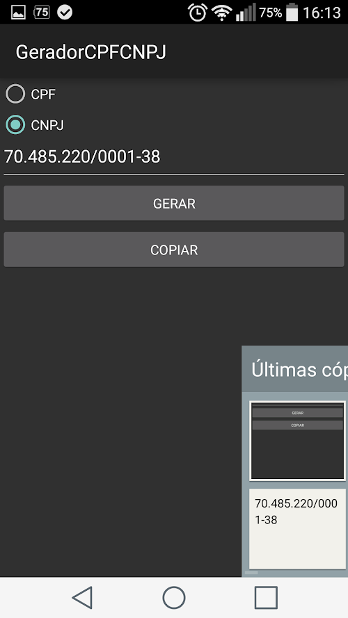 This version of Gerador CPF/CNPJ Android App comes with one universal variant which will work on all the Android devices.