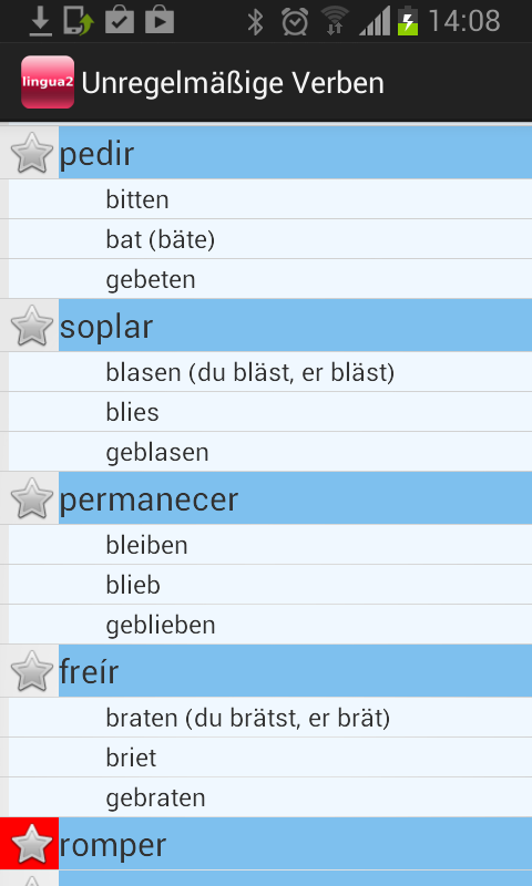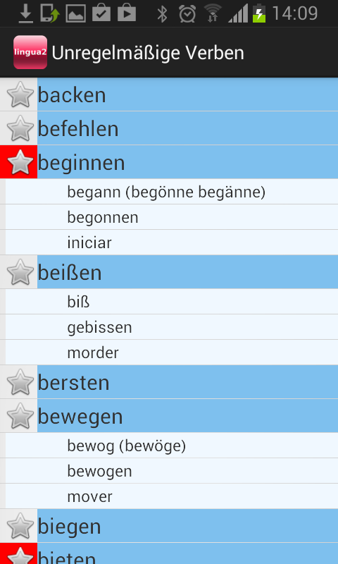 This app is as simple as useful. Learn German irregular verbs in the theory section and do the suggested tests. There is a possibility to highlight the verbs that you consider as more difficult, which means that you can identify them easily later on. This app is convenient to use wherever you are so it doesn’t matter whether you are on the move or just relaxing in the house. Moreover, you can select the translation of the verbs in several languages.