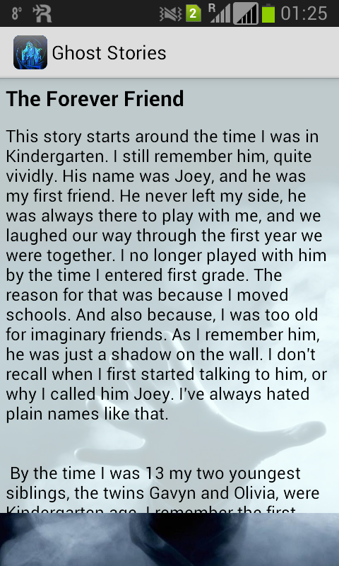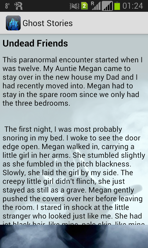 Since ancient times, ghost stories—tales of spirits who return from the dead to haunt the places they left behind—have figured prominently in the folklore of many cultures around the world. This application is about Ghost Stories.