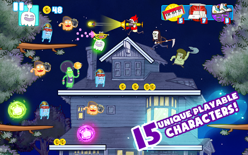 Unleash a spooky smackdown with a huge variety of characters. Play as Mordecai, Rigby, Pops, Margaret, Eileen, Baby Ducks, Thomas, Skips, Muscle Man, Benson, Guardian of Eternal Youth, Gary and Techmo. Each character features a unique attack and upgradeable skill tree, and you'll need to master all of them to conquer the game.