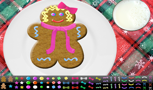 Kids will love to decorate their very own gingerbread man using OVER 70 DIFFERENT ITEMS. Just drag and drop the items at the desired spot to create 1000's of different gingerbread men.