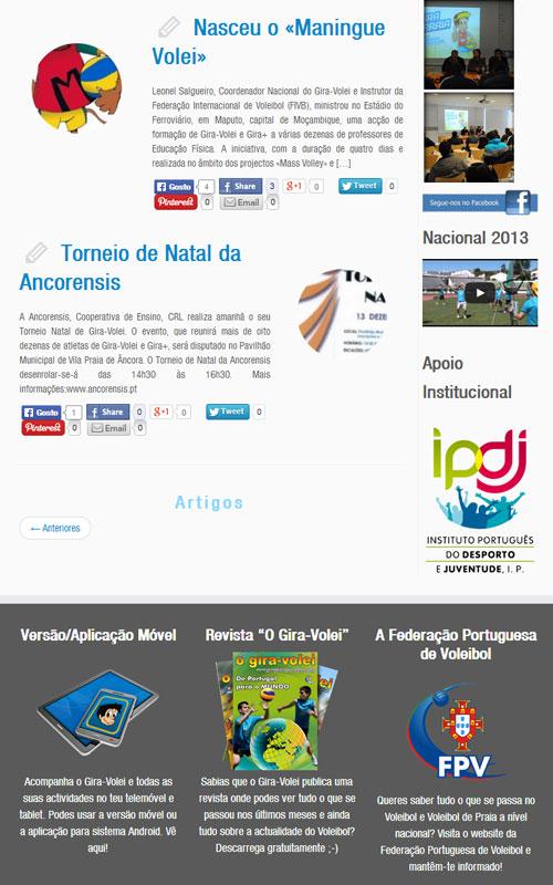 Programa de Voleibol sob o lema Fácil, Divertido e Competitivo, direccionado para os mais jovens onde todos podem participar a partir dos 8 anos, culminando num Encontro Nacional realizado anualmente. Existe ainda o programa Gira+ para maiores de 16 anos e o Gira-Praia, variante de Voleibol de Praia.Volleyball program under the Easy, Fun and Competitive, targeted for younger where everyone can participate from age 8 theme, culminating in a National Meeting held annually. There is also the Gira + for over 16 years and the Gira-Beach program, variant Beach Volleyball.