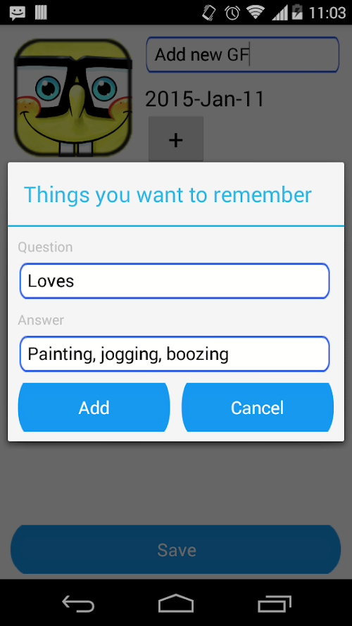 This is the best suitable app for you, which helps you to record her likes and dislikes, you can add as many girlfriends as you want, it also has the feature to edit and delete options. Last but not the least there is reminder option as well. You set reminders about your date, her birthday etc. Very easy to use and effective too.