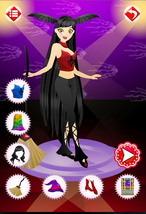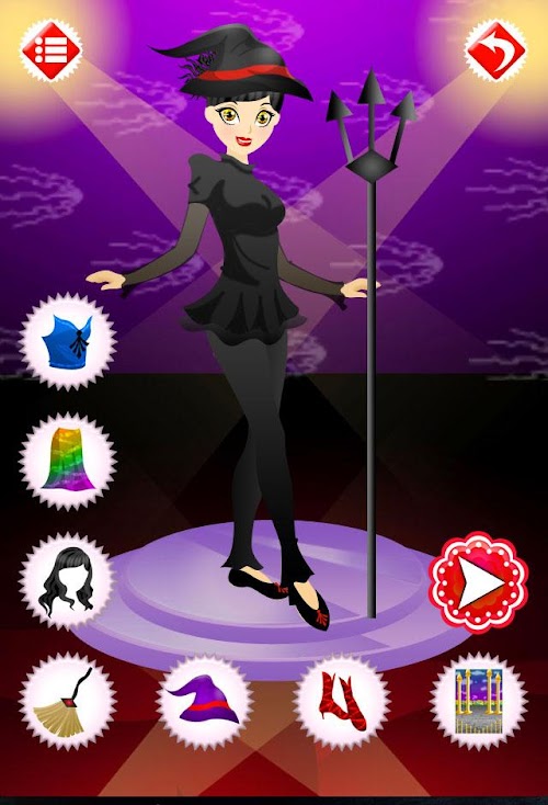 Only girls with great taste in fashion can enjoy this game girls dress based on the famous party on the eve of All Saints also known as the Witch Halloween night, you will have the most modern accessories blouses, dresses, witch brooms, the most horrible hairstyles, hats, boots and shoes and most terrifying scenes to play unlimited clothing and design. The Halloween party is fun when people will not stop banter and give scares your neighbors to ask for candy.