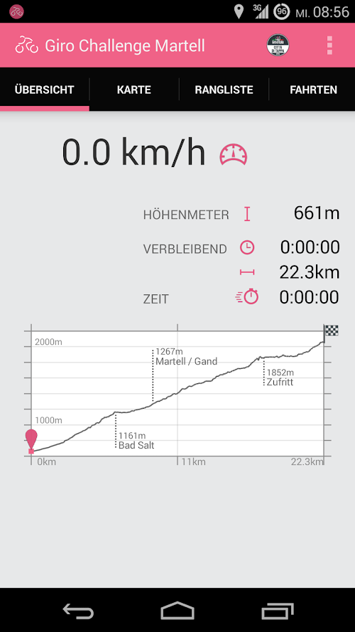 Weitere Informationen zur Strecke: http://www.giroditalia-vinschgau.net/"Giro Challenge Martelltal" is the innovative smartphone app. All ambitious hobby rider can be compared to the cycling stars. On the target increase in the Giro queen stage in Val Martello.
