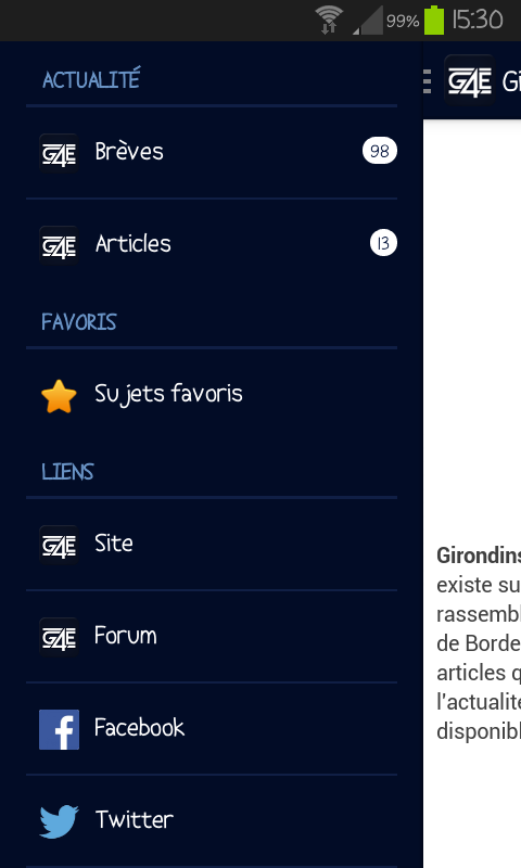 Il vous sera également possible de customiser et régler à votre guise bon nombre des paramètres de l'application (notification, actualisation, thème, ...)The official application site Girondins4ever.com landed on the Play Store! All news Girondins de Bordeaux in one click ...