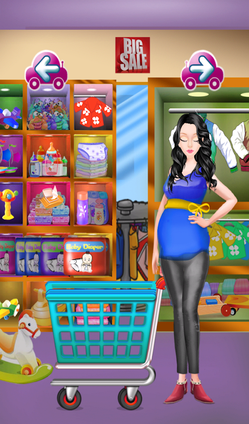 Hi There. Today, a friend decided to go to the store to buy some things for the future of her child because the mother will be soon. She has to buy more things and go home to wait at birth, but needs help for a tummy ache very hard and can not move very well on her feet. In this game you have to help my friend to go shopping with her and help her in everything you will require.
