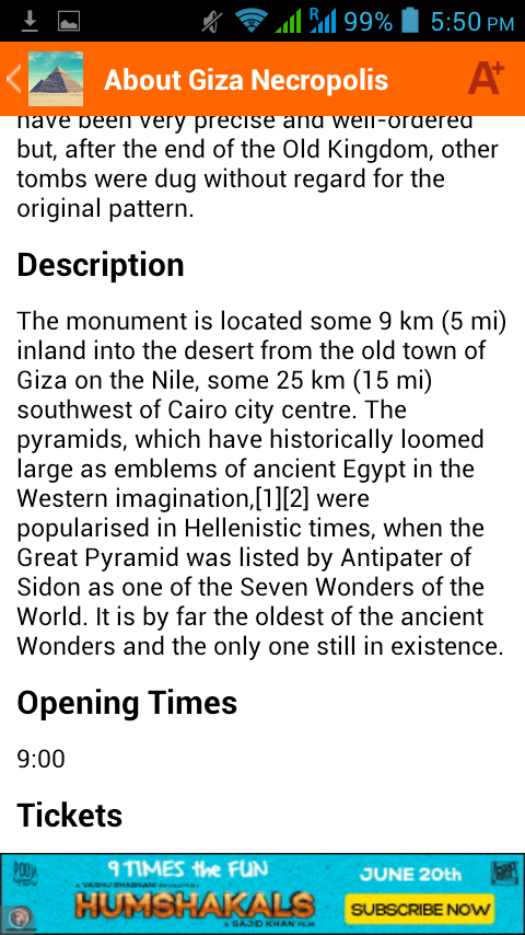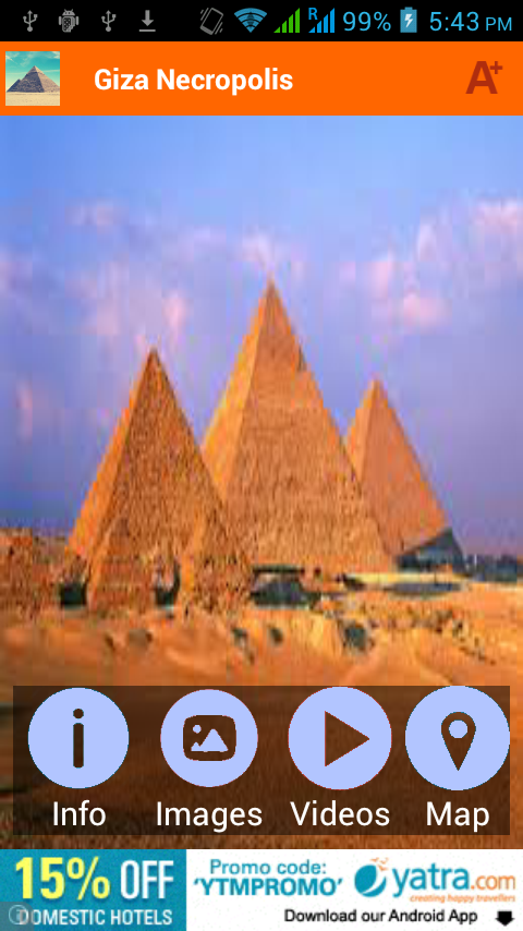 Monuments are the pride of the country they belong to. This Giza Necropolis app will provide you all the details about the famous monument. The Giza Necropolis is situated in Cairo, Egypt and is an archaeological site on the Giza Plateau This complex of ancient monuments includes the three pyramid complexes known as the Great Pyramids, the massive sculpture known as the Great Sphinx. Giza Necropolis is the best epitome of ancestral monuments.