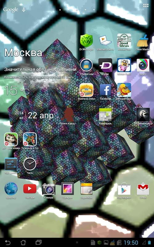 Live wallpaper as a rotating glass cubes.Min Android 4.0 (API Level 14).