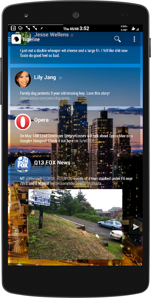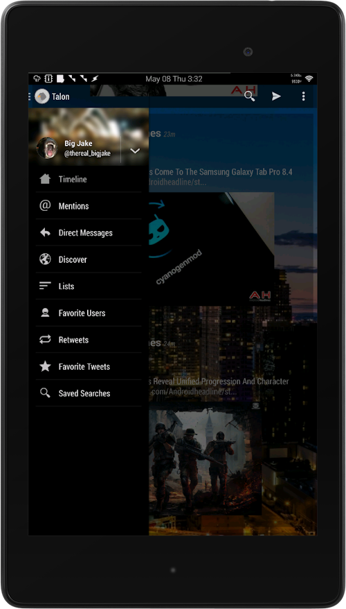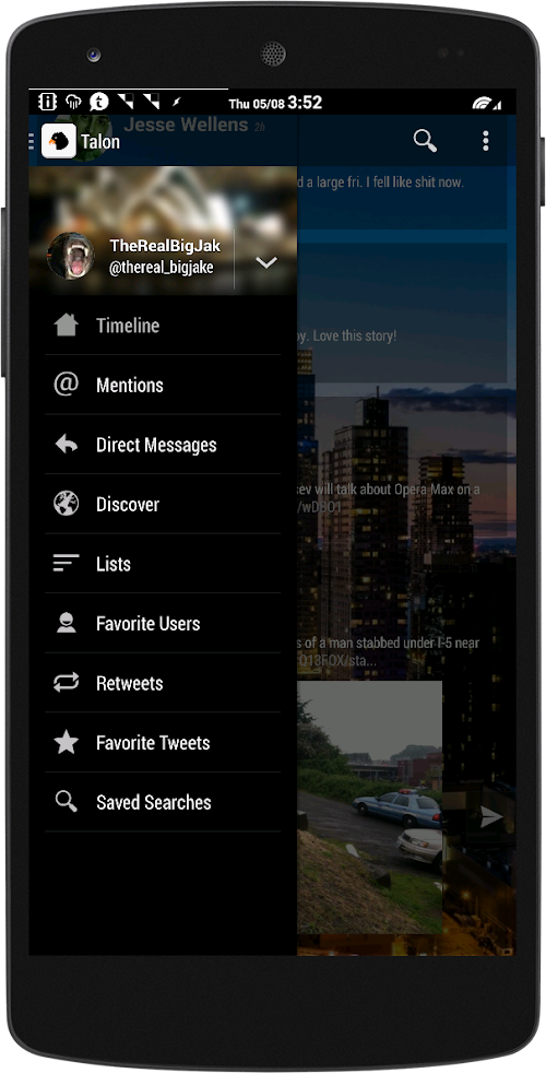 This is a minimalistic theme for Talon for Twitter with white accents, transparency and full image preview on the timeline.