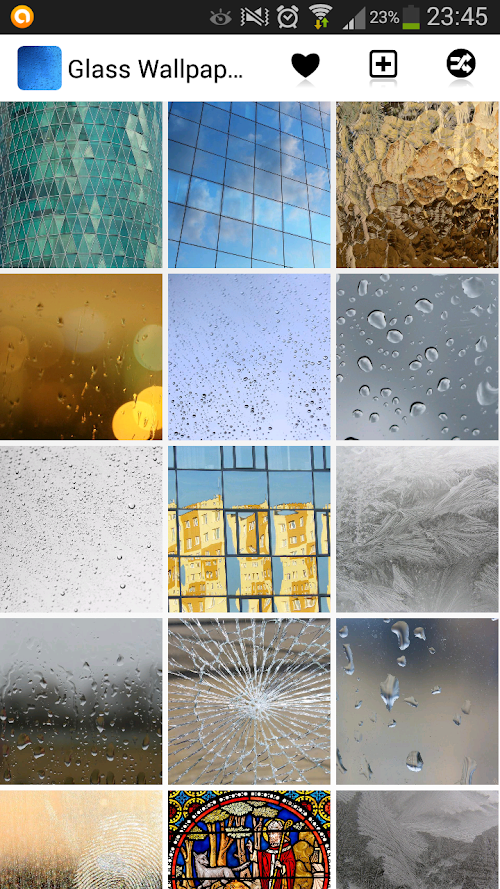 The app contains a great selection of glass wallpapers and can be shared via your social media apps or saved as wallpapers.