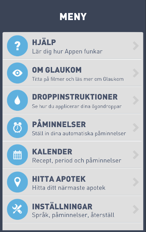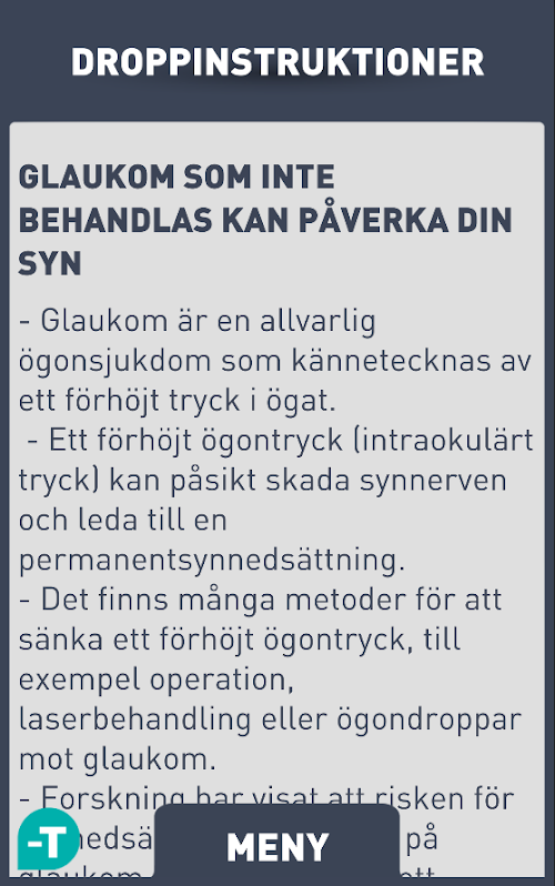 I appen finns bl a instruktion om hur du tar dina ögondroppar och när ditt recept måste förnyas.