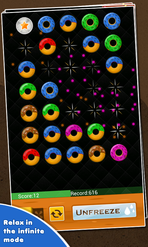 At the end of the 90 levels you can relax in the Infinite Donuts mode, where the donuts keep coming and the only goal is to relax and keep blasting them.