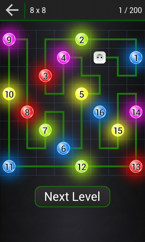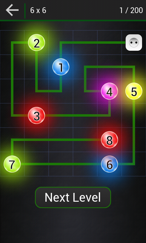 You have one socket and one wire. Your job is to connect power to every light. But you must to do it in proper order. Start from socket, then connect light numbered 1, 2, 3... Also make sure to fill the entire board with wire! See how lights glow as you connect power to them.