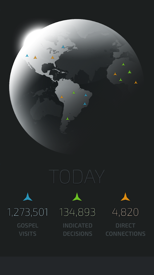 Reach the World gives you real-time insight into who experiences the Gospel every moment of every day. Watch real time as visitors come to Global Media Outreach websites, read, see and hear the Gospel. The GreatCommission2020 website app gives you a moment-to-moment live view of people visiting our Gospel websites, indicating decisions for Jesus, and asking for follow-up from all over the world. Each day, millions of people search online for spiritual help or are open to the Gospel. We are able to present the Gospel message online in text, video, mobile in multiple languages.. New believers connect directly with volunteer Online Missionaries and begin growing in Christ through discipleship materials and Christian communities.