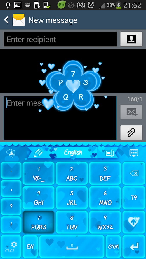 This version of GO Keyboard Blue Hearts Theme Android App comes with one universal variant which will work on all the Android devices.