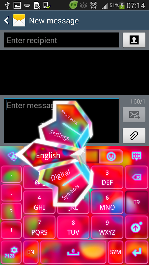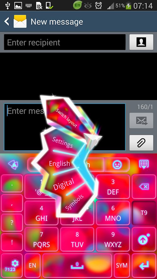 "GO Keyboard Color Bubble Theme" is a vibrant elegant theme, designed by Inner Works Studios, for those who love colors on their keyboard. This shiny new theme has glowing pink buttons set on a bright wallpaper, filled with a rainbow of colors spanning across pink, blue, purple etc. and cute glowing white font to match. It is so colorful and cute that makes your mood very happy. Get the colors of the rainbow with "GO Keyboard Color Bubble Theme"! We hope you enjoy Color Bubble theme!