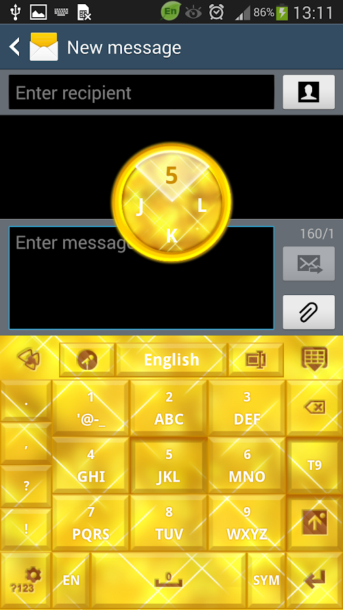 "GO Keyboard Gold Glow Theme" is a designed by Inner Works Studios, it features a realistic gold looking keyboard . This luxurious theme features beveled gold buttons with a beautiful 3D effect on glowing gold textured background.