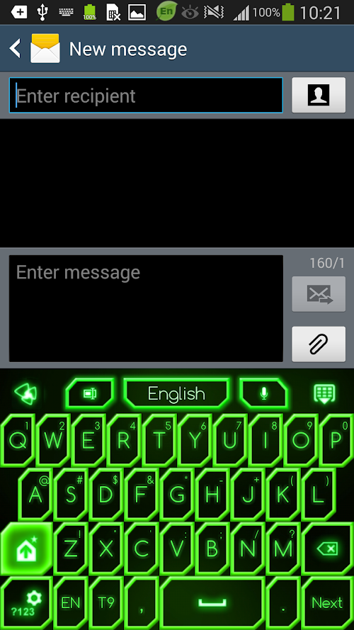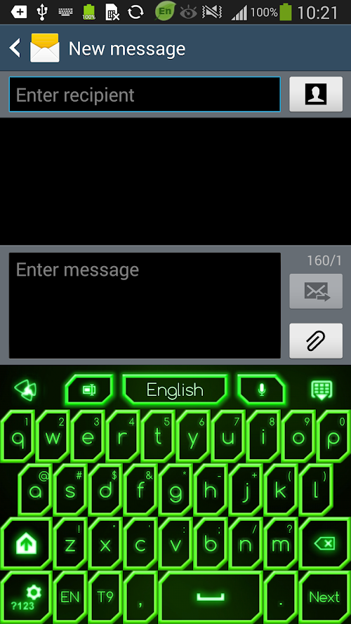 "GO Keyboard Green Neon Theme" is designed by Inner Works Studios, to brighten the phones of those who love the night life, with neon green buttons that glow on a dark green background. So if you love to party till day light, customize your smartphone with this cool free neon green theme! We hope you enjoy our free theme and feel free to check out the rest of our Neon series keyboards!