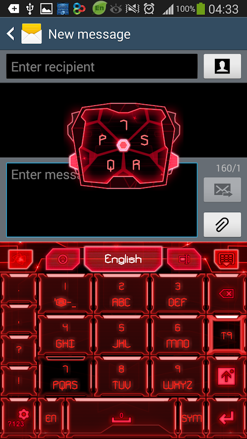 "GO Keyboard Red Tech Theme" is a premium HD theme, designed by Inner Works Studios, for the sci-fi technology heads. The transparent keys have an amazing red neon tech effect, they glow like a laser on a dark background, everything shines red on a dark futuristic alien space ship design. The incredible high tech graphics will transform your keyboard with a unique stylish high-tech look. Enjoy our new free theme and feel free to check out the rest of our Tech series keyboards!