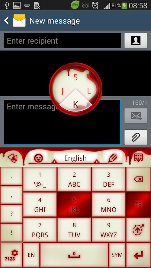 "GO Keyboard Vampire Red Blood" is a theme designed by Inner Works Studios for all who love the mysteriously romantic and dark side of the undead, vampires! The theme has shiny red colored buttons that fill with blood red when pressed. Customize your smartphone with this cool, free vampire theme! We hope you enjoy Vampire Red Blood Theme!