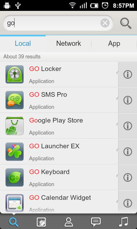 GO Search Widget is another useful tool dedicated for GO Launcher EX. 3 types of search are included: Local, Network and App.
