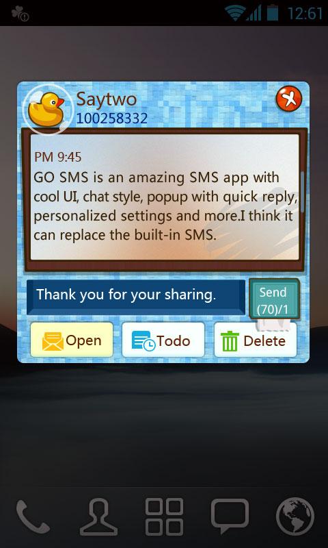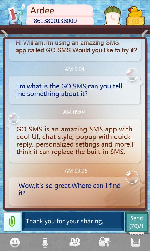 This version of GO SMS Pro ShowerRoom ThemeEX Android App comes with one universal variant which will work on all the Android devices.
