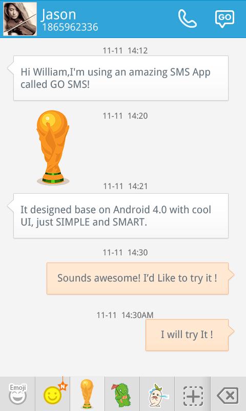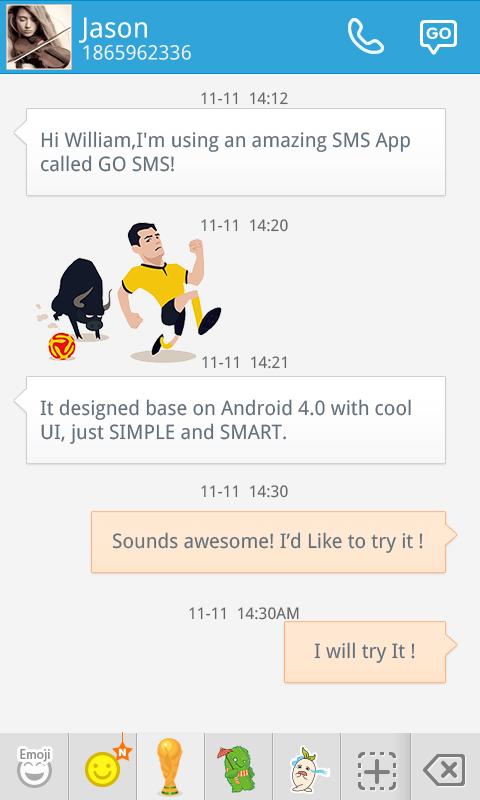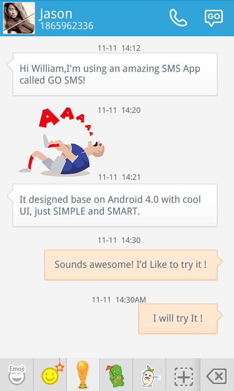You neeed to install GO SMS Pro to use this sticker set. GO SMS Pro is a fun and simple application.