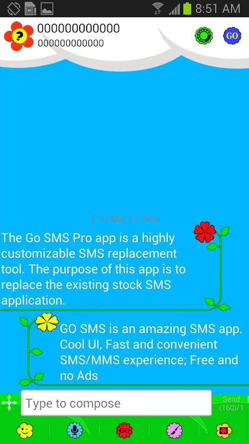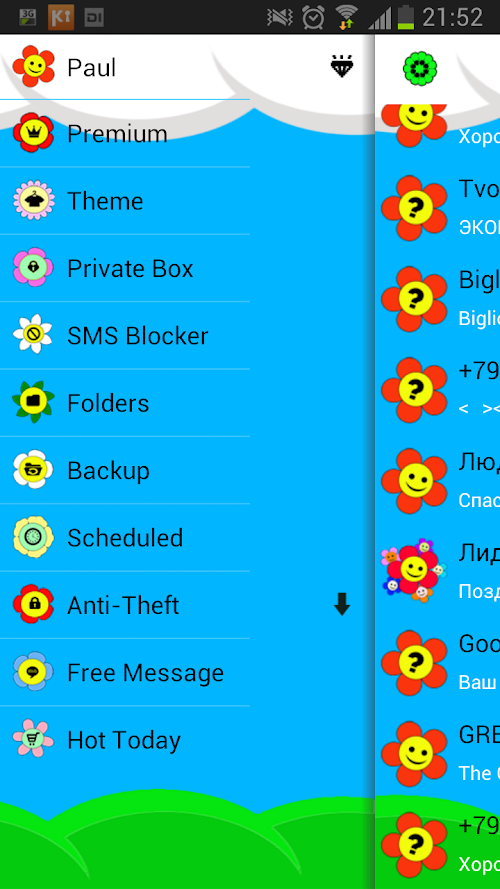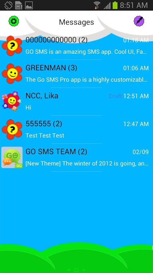 This positive and joyful theme necessarily make you happy while you are using the best sms app for android. ;)