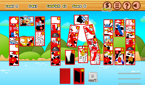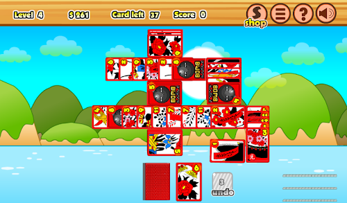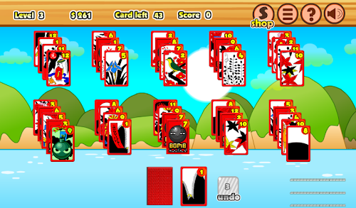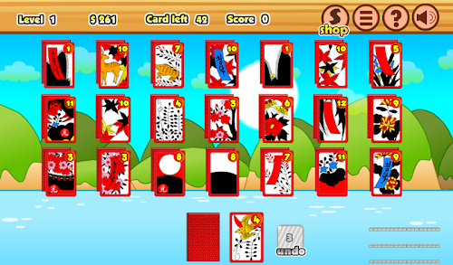 Clear all the cards from the board! Eliminate one card from the screen pile by tapping the number higher or lower than the number shown at the bottom of the screen. The cards that are left on the screen determine your score and the number of stars you will receive. No cards left gives 3 stars, 1 card left gives 2 stars, and 2 cards left gives 1 star, if neither of those, you have to try again! Make good use of the bombs to change the order of the numbers when you're in a pinch. You cannot undo the usage of the bombs so be careful!