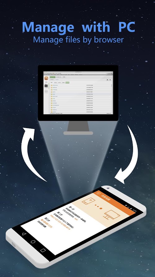 6)No USB cable needed - Simple access to manage your files s in your cellphone by browser without installation.