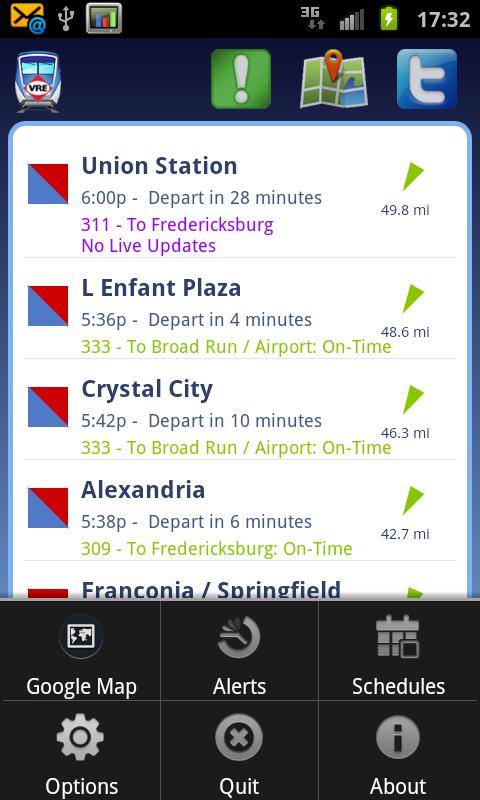 [NO LONGER SUPPORTED] VRE paid $3.2 million (source: https://www.washingtonpost.com/local/crime/losing-bidder-for-vre-contract-sues-winner/2013/12/19/508ef4a2-68e1-11e3-8b5b-a77187b716a3_story.html) for a new mobile app, so their app is the one you'll want to use. I'm no longer supporting GoVRE so it's open sourced to provide a community supported alternative: https://github.com/JasonBrannon/GoVRE