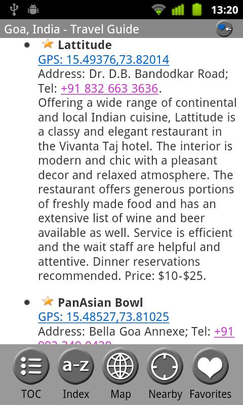 ✔ The top restaurants have been individually selected by MobileReference editors. These restaurants are marked by a star in the EAT chapter and are plotted on the GPS map.