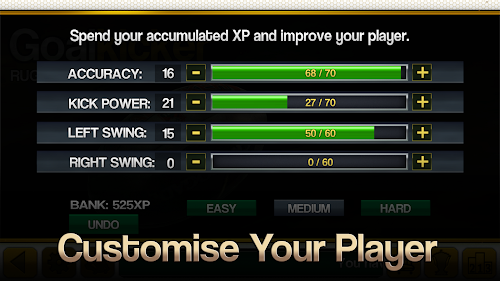 Develop your player from zero to hero. Do you choose to develop your accuracy or do you prefer to be able to kick the ball longer? Go online and prove that you are the best!