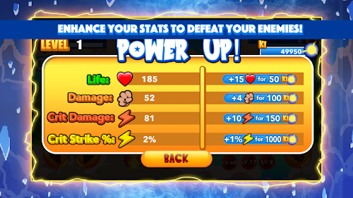 Is my hero strong enough for revenge against the shadow forces? This empowers your stats to gain extra attributes. Every time your Dragon fighter increases in level the more evolution epic forms you receive and makes your stats getting a lot stronger and receives Ki. Collect these gold coin ki to upgrade your Stamina life, Damage and Critical strike for better fighting.