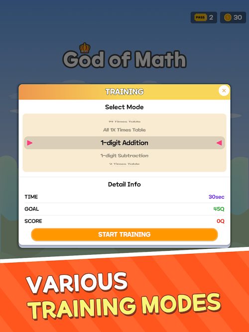 It is a game that records higher scores in a limited time based on 19 types of computational questions provided in training mode.