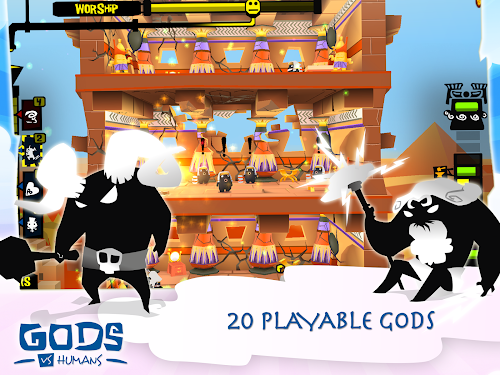 Humans are building a tower to reach the Kingdom of the Gods! Embody one of these divinities to foil their attempts. But, be careful not to kill them with your special powers, because your survival depends on their devotion!