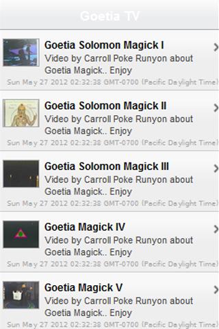 Access over 30 Goetia related videos (plus more coming soon with weekly updates) such as documentaries, interviews, invocations and more. The Goetia / Ars Goetia is a 17th century English manuscript also known as the Lesser Keys of Solomon (different then The Great Keys of Solomon) comprised of instructions on how to summon angles and demons which were supposedly the same ones which King David and Solomon had power over and appear through out ancient folklore as jinn's or genies such as the lamp of Aladdin. The Goetia can be used to accomplish whatever desires the practitioner wishes and can be used to achieve success, wealth, money, peace, war, revenge, wisdom, knowledge and many other things, primarily by the use of the 72 Demonic Spirits / fallen Angels of which some are also mentioned in the Book of The Sacred Magic of Abramelin the Mage. This app uses third party streaming of videos and time to time advertisements may appear. More videos to be added soon.
