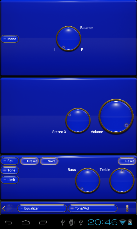 This version of gold blue power amp skin Android App comes with one universal variant which will work on all the Android devices.