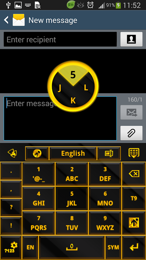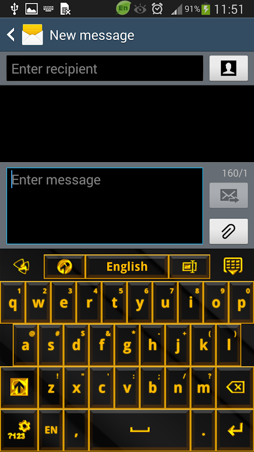 "Gold Glow Black Keyboard Theme" is an elegant GO Keyboard theme designed by Inner Works Studios, for those who want to relish in luxury. This classy and simple theme features beveled black with a glowing gold frame buttons giving the impression of 3D, all set on a beautiful black background. Theme your keyboard with gold like millionaires! We hope you enjoy Gold Glow Black Keyboard Theme!