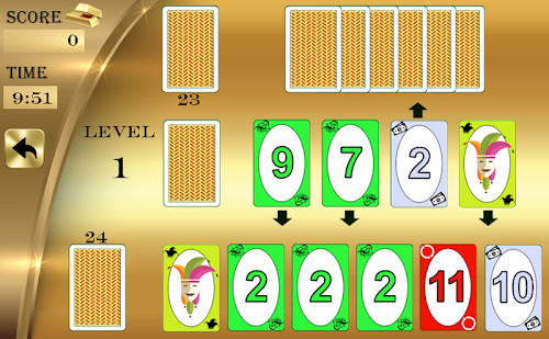 As levels progress, the difficulty increases:you will have less time to get rid of your cards and you will have fewer Joker cards, so you have to manage them well.