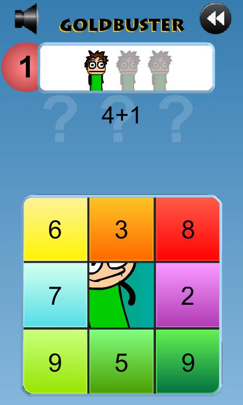 When you play Goldbuster the goal is to answer different kinds of math problems correctly. Each time you complete a set of problems, you get to see a short, fun animation. If you answer all of the problems correctly, you win a gold medal.