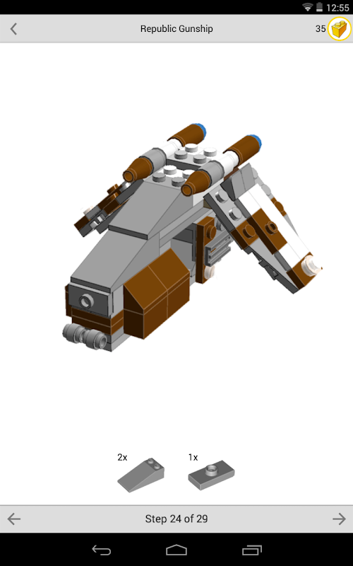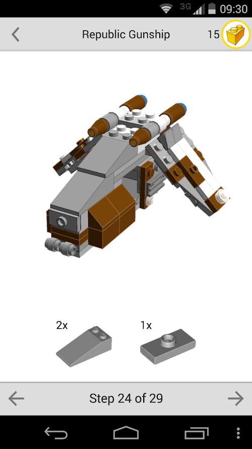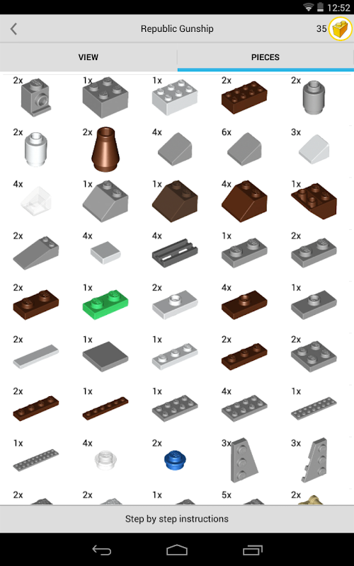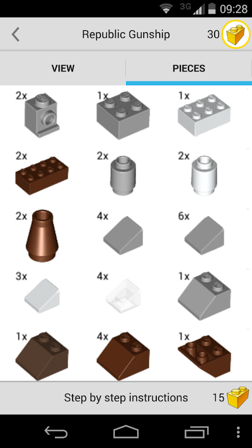+ While constructing your model you can see what LEGO® pieces you need for each step.