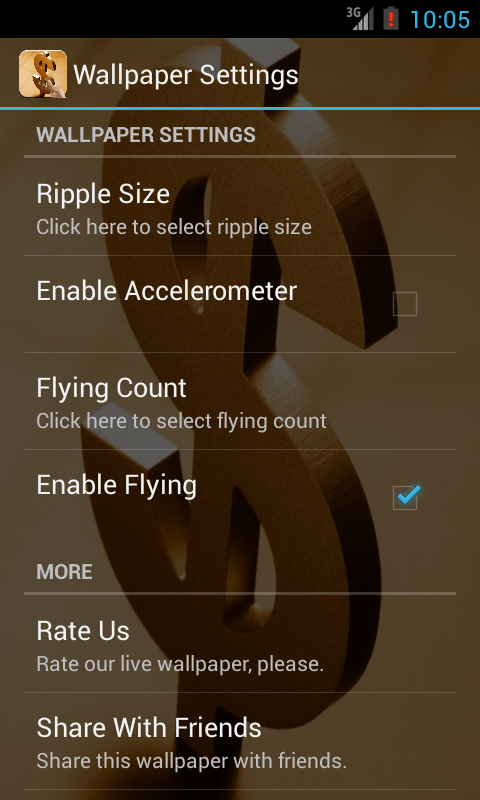 This version of Golden Dollar Live Wallpaper Android App comes with one universal variant which will work on all the Android devices.