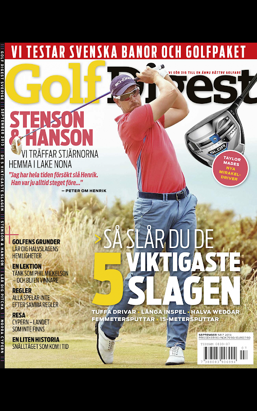 Golf Digest är magasinet för den passionerade golfaren. I Golf Digest hittar du reportage om världens mest spännande banor, du läser intervjuer med de hetaste spelarna på världens alla tourer. Golf Digest berättar märkliga och roliga historier ur golfens förflutna. Dessutom bevakar tidningen allt som händer på utrustningssidan – du får tips om nya klubbor, bollar, bagar och allt annat som du behöver för en lyckad golfrunda.Golf Digest is the magazine for the passionate golfer. In Golf Digest you will find articles about the most exciting courses, you read interviews with the hottest players in the world all tourer. Golf Digest describes strange and funny stories from golf's past. Also monitors the newspaper everything that happens on the equipment side - you get tips about new clubs, balls, bags and anything else you need for a successful round of golf.