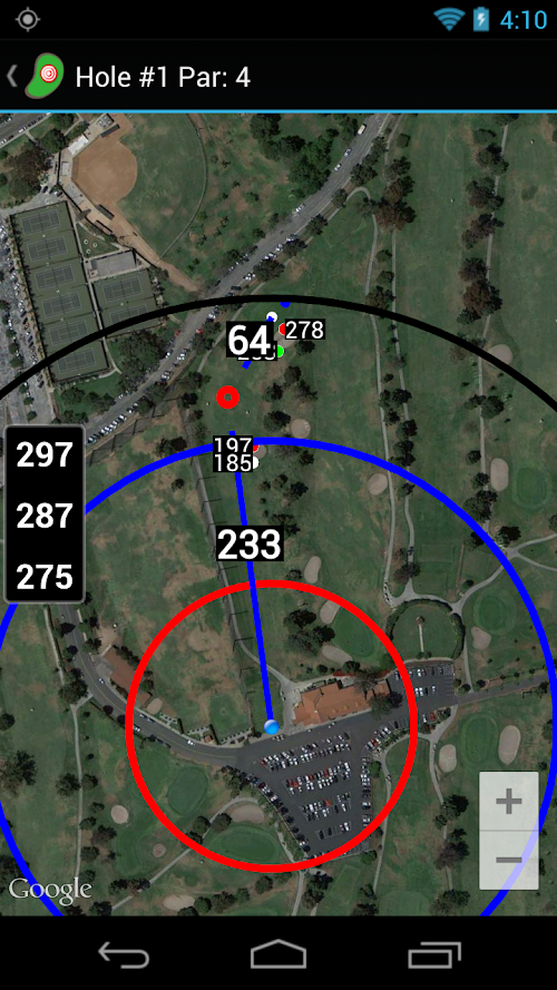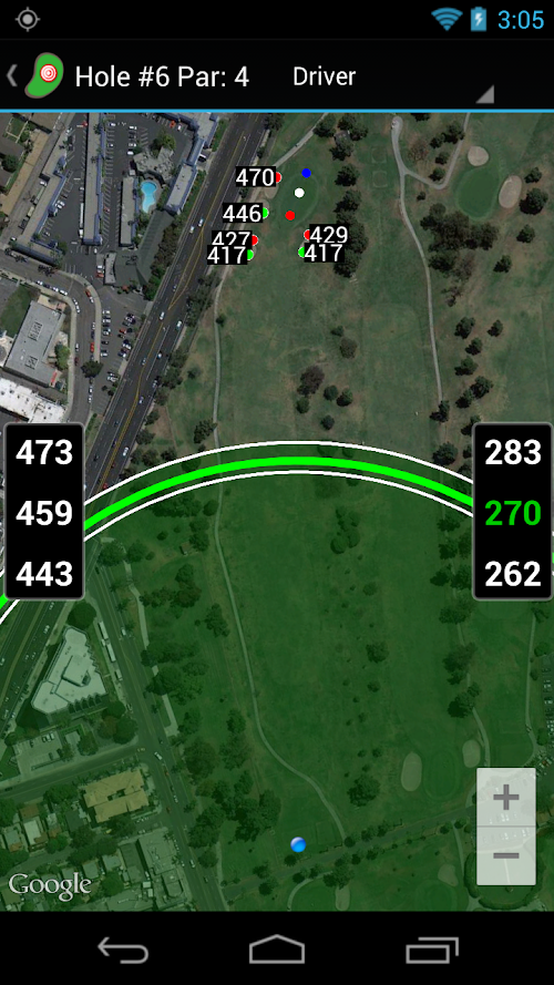 * View satellite maps of the hole and get accurate distance to any point on the course