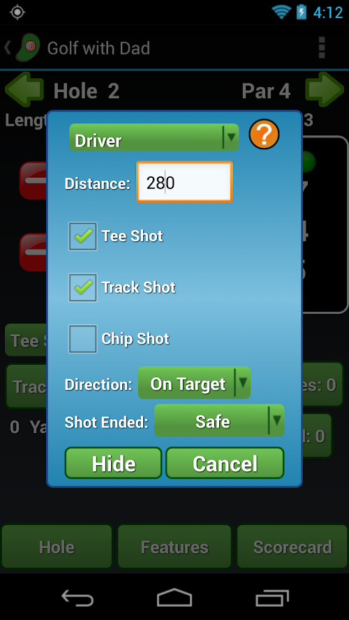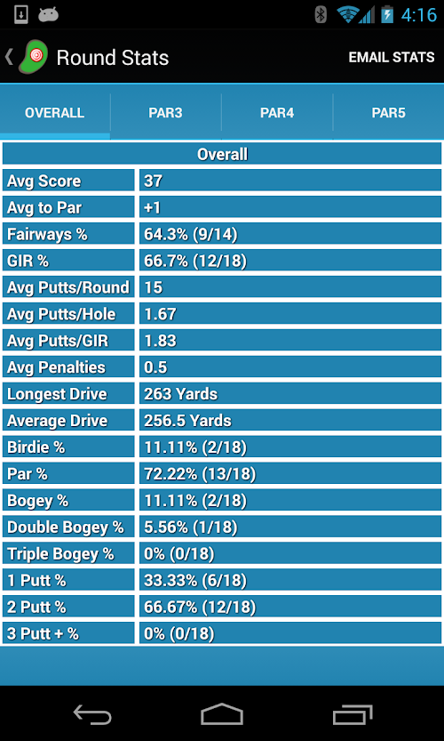 * Keep your score and track your putts, greens, and fairways - see them visually on your scorecard