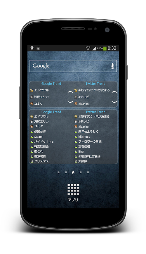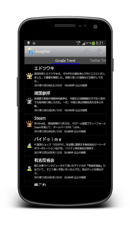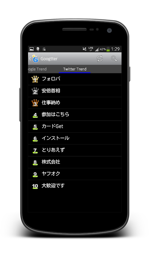 Googtter shows trend keyword of Google searching & Twitter tweets in ranking style.