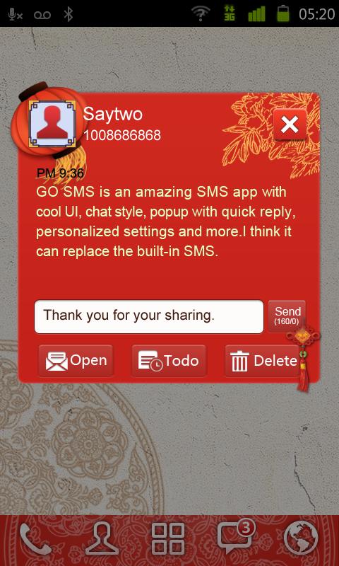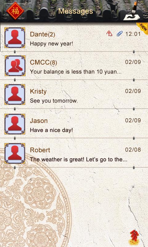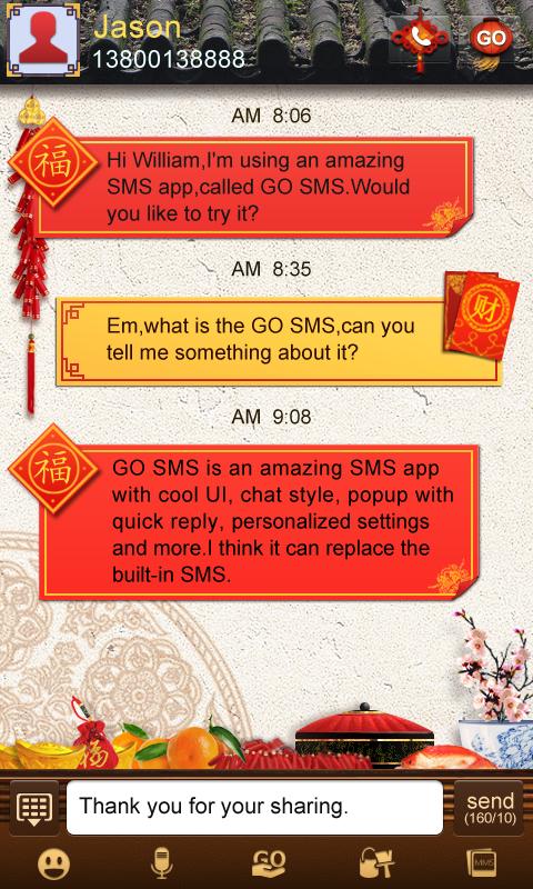 A spring festival theme Go sms with many chinese festal elements. Wish you have a happy new year in 2013. Hope you guys like it :-D