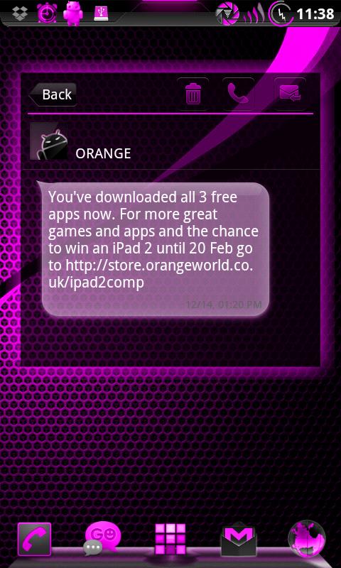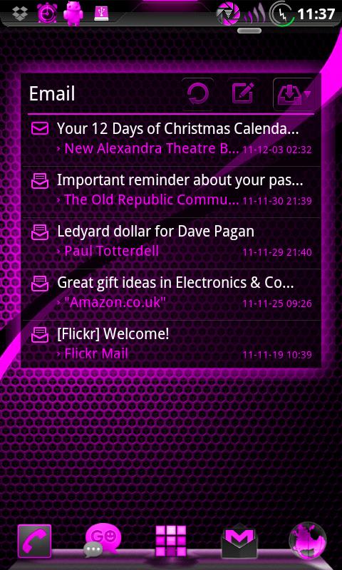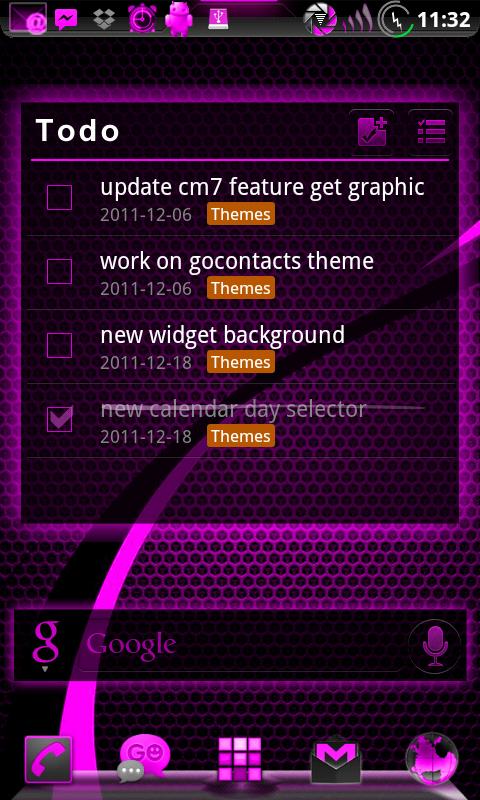This Theme matches other AdeaPink themes by TeamCarbon, such as GOLauncher Ex, GoSMS Pro, and CM7 Themechooser.